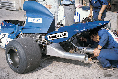 Amigos, vejam o escapamento da Tyrrel modelo 002 do François Cévert, em 1972. A foto aí é do GP da Itália, em Monza, que foi vencida pelo "Rato" Fittipaldi, consagrando-se campeão mundial de F1, seguido por Mike Hailwood, da Surtees e Denny Hulme, da McLaren que completou o pódio. François Cévert abandonou a prova na volta 13 com problemas no motor.